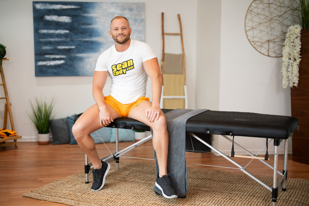 “Evan asks for a deep tissue massage, and bearded hunk River assures him that’s his specialty. He immediately proves it’s true as he starts rubbing Evan from toes to shoulders, making sure to give his butt plenty of attention, then licking the client’s hole. Evan sucks the masseur’s big cock, and River makes sure his ass is stretched out enough to take it in doggystyle. Evan rides the top on the table, then orgasms as River drills him on his back before the top cums on his cock.”