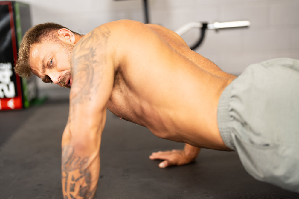 “Zak sees Scott check him out as he walks into the gym, so he makes sure to give him a good view of his ass as he bends over a block to start stretching. Zak sucks the top, and Scott gets him naked and bent over the bench to rim his hole before penetrating him. The horny bottom gets fucked in missionary and then rides the top. Scott pounds Zak doggystyle till he cums, and the bottom stretches out on the floor to stroke himself off.”